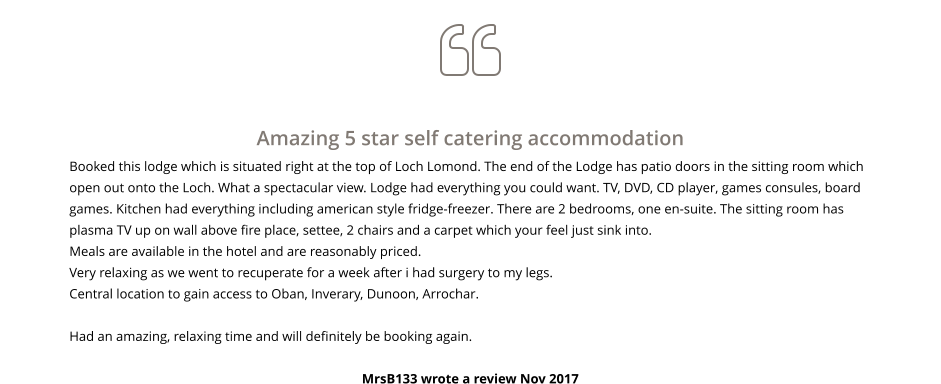 the bustle and traffic of other stretches of the Loch, Loch Side View is ideal for those looking for adrenaline and relaxation alike.